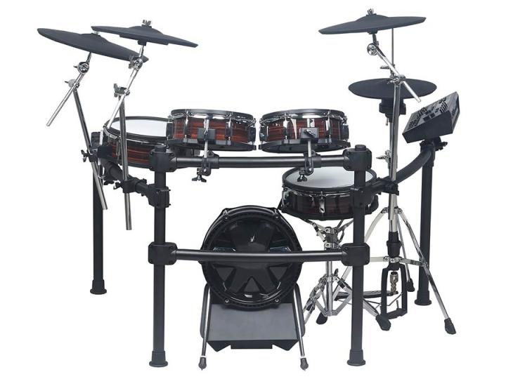 Expressive cymbals: 2 × 14″ crash (2-zone with choke) & 16″ ride (3-zone with choke), expandable